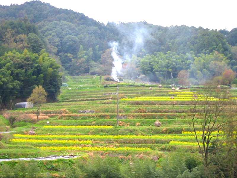 この棚田も丘陵地帯特有の棚田だと思います。今はあちこちの棚田に菜の花が。 |