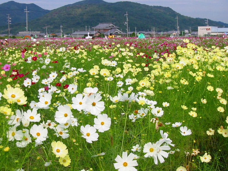 野球場がいくつも入りそうなほどの広さ一面に咲きみだれるコスモス、かなりの迫力です。 |