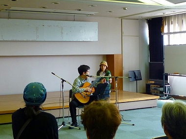 初めは月夜さんの司会で和生さんがクラシックの「ショウロ」「月光}を演奏。次に「愛しのエリー」「ぼくはユニークだねえ」「ねえ、おかあさんあのね」の三曲はギターを弾きながら、歌ってくれました。後の2曲は特にこれからのお母様の話の内容と呼応してよかったです。和生さんは皆さんの笑顔と拍手に満足そうでしたが、演奏後はさっさと一人でギターを背負って帰りました。