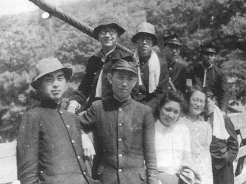 唯一残っている日本での尹東柱の写真です。同志社在学中に英文科のハイキングで、天ヶ瀬吊り橋で撮ったもの。前列左から二人目が尹東柱。