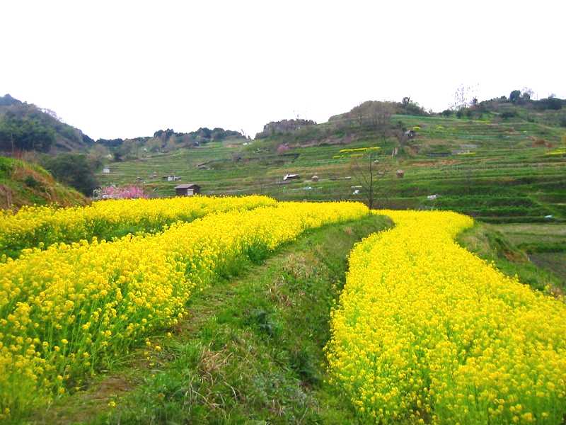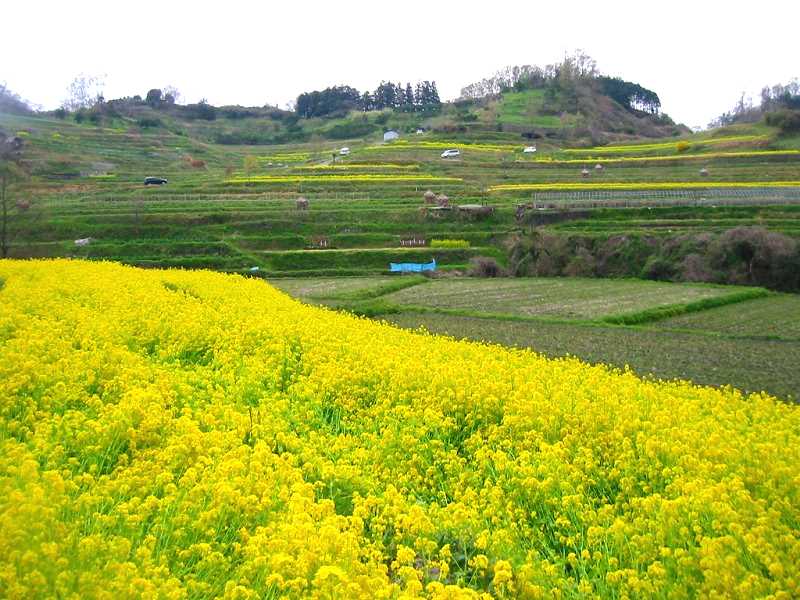 この棚田も丘陵地帯特有の棚田だと思います。今はあちこちの棚田に菜の花が。 |