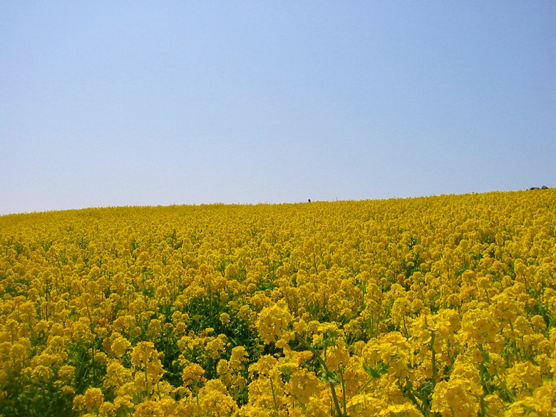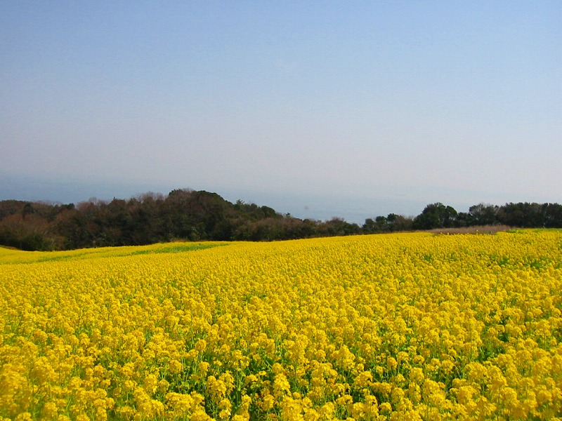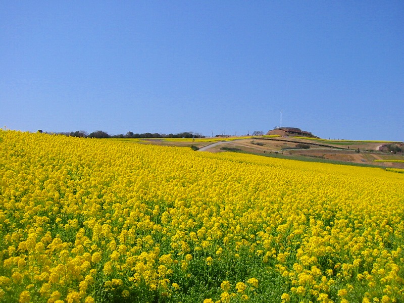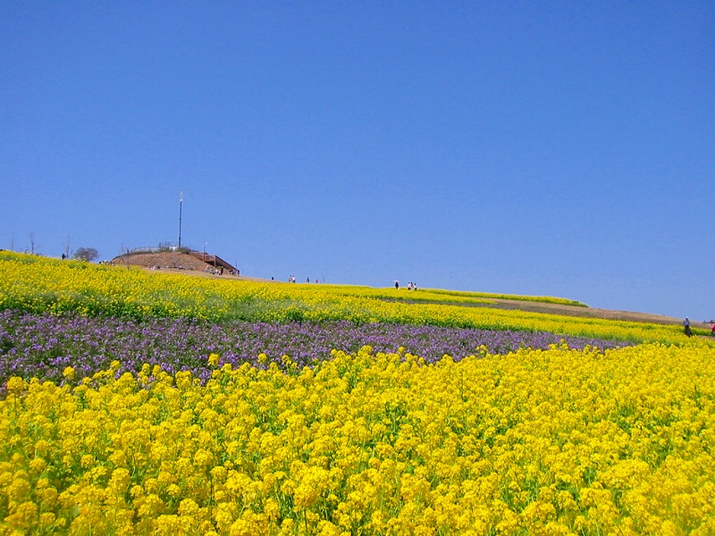 4月の始めだったので、「花さじき」は菜の花でいっぱい。人の姿も頭が見えるだけ。 |