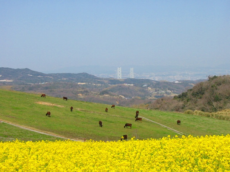 となりは牧場。橋と牧場と菜の花。なかなかいい構図でしょ? |