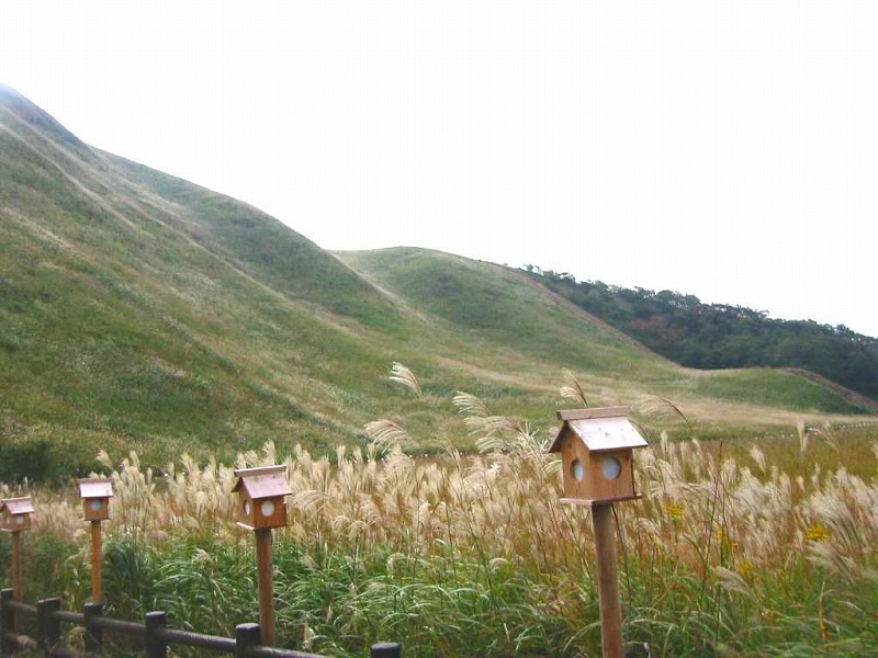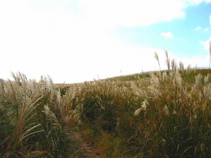 十月末でしたが、見わたすかぎりのすすきの大草原。山の上までぜんぶすすきが埋め尽くしています。 |