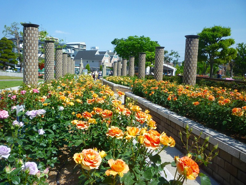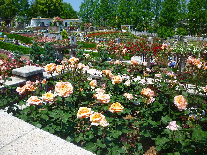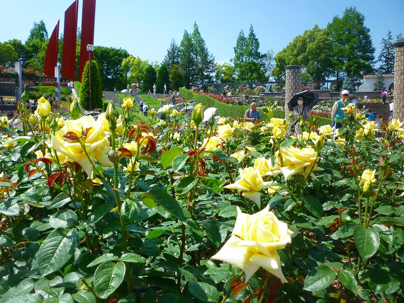ここは兵庫県伊丹市の荒牧バラ公園です。バラ専門の公園でここは隅から隅までバラでいっぱい。 |
