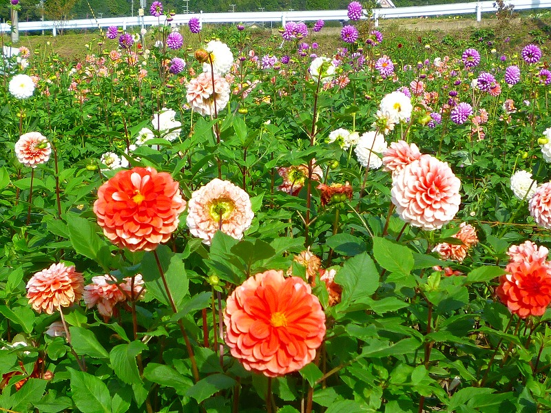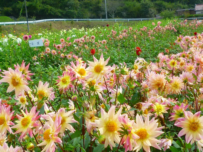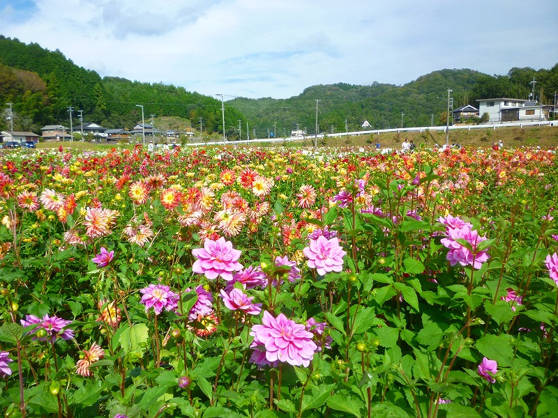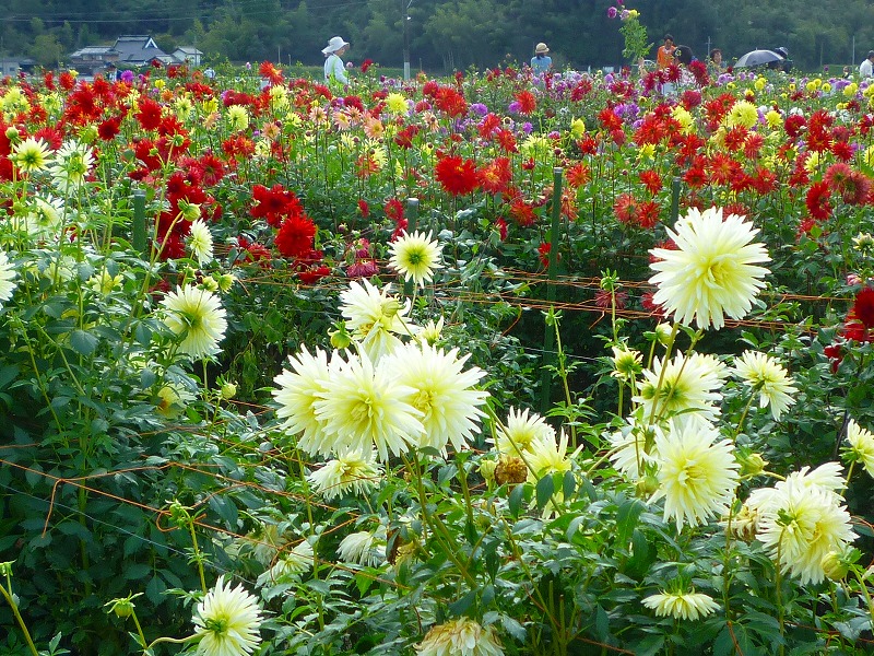 静かな山あいのダリア園、都会の喧騒をわすれて色とりどりのダリアの花の中をめぐります。 |