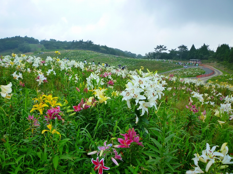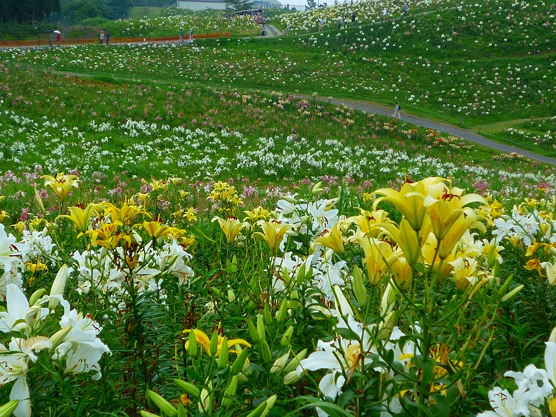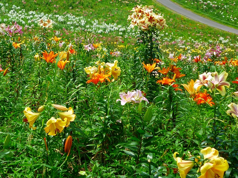 ユリ園の中には、自由に見て回れる散策路が縦横に走っています。 |