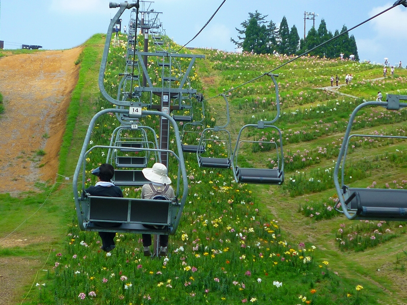 スキー用のリフトに乗っても、ユリの花を見ることができます。 |